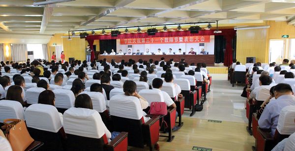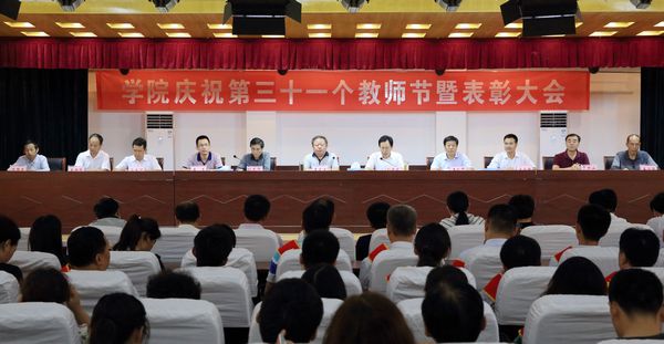 9月9日下午,在庄严的国歌声中,学院庆祝第三十一个教师节暨表彰大会在勤业楼多功能报告厅隆重召开。学院党委书记李友渔出席大会并作重要讲话,党委副书记兼纪委书记刘德云,副院长纪光泽、王化中,副院长兼工会主席崔杰及学院领导班子成员、副科级以上干部、全体专兼职教师和学生代表共570余人参加了大会。刘德云主持大会。