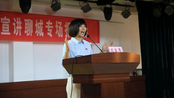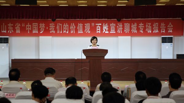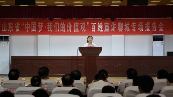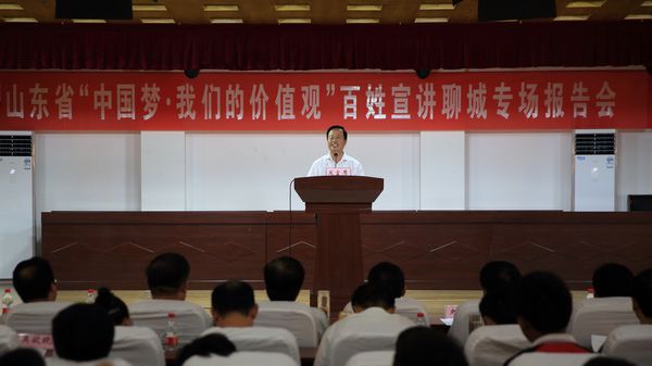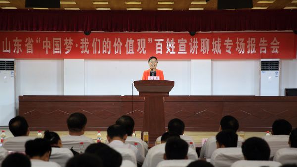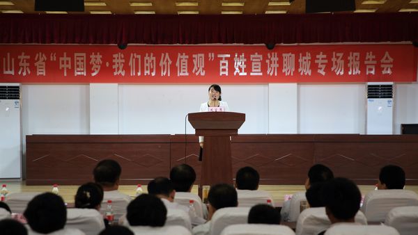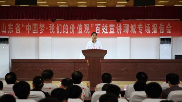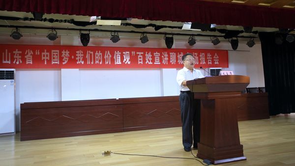赵庆忠在讲话中指出,百姓宣讲是我省理论教育、理论宣讲工作的重要品牌。三年来,一年一个宣讲主题,一年一次宣讲比赛,一年一回巡回宣讲,今年的宣讲主题是“中国梦 我们的价值观”。 聊城市委宣传部、市委讲师团在全市组织开展了“中国梦 我们的价值观”百姓宣讲竞赛活动。各级各单位先后举办了100多场宣讲比赛,1000余名选手参加,遴选出60名百姓宣讲员参加了全市的比赛。他们用鲜活生动的事例、简洁质朴的语言,讲述对幸福生活的期盼、公平正义的向往以及对美好道德的弘扬与践行,引起了现场听众的思想共鸣、情感共融和心灵震撼,激发了全市上下作风引领、团结实干、争先进位、科学发展的工作热情和勇气担当。