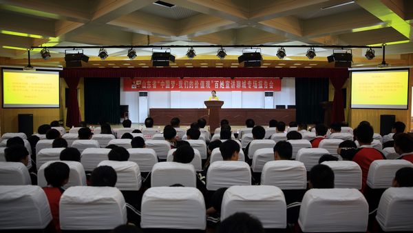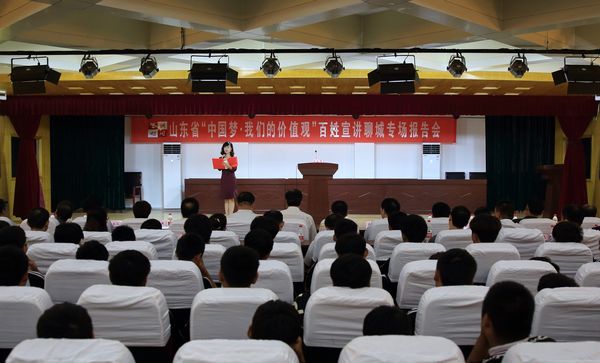 9月24日,山东省“中国梦 我们的价值观”百姓宣讲聊城专场报告会在学院举行。市委常委、宣传部长赵庆忠出席会议并作了重要讲话,学院党委书记李友渔为大会致辞;山东省委讲师团王为华主任率领的宣讲团成员一行作了精彩的报告。