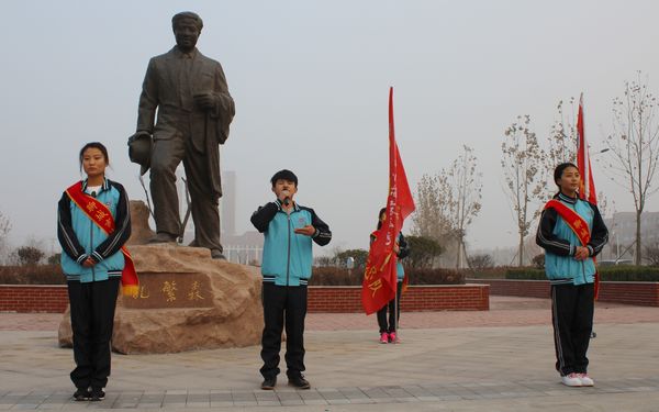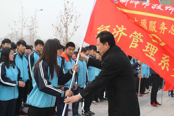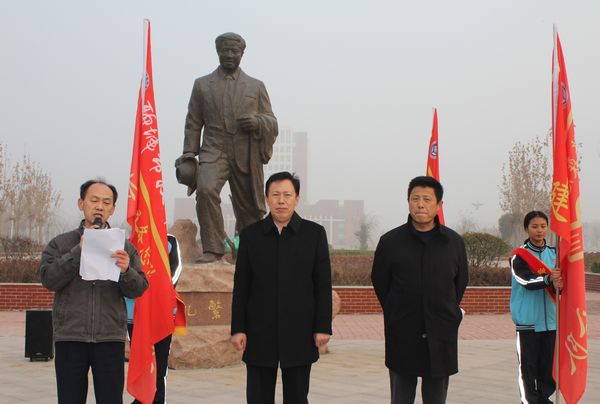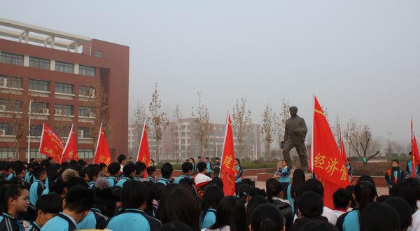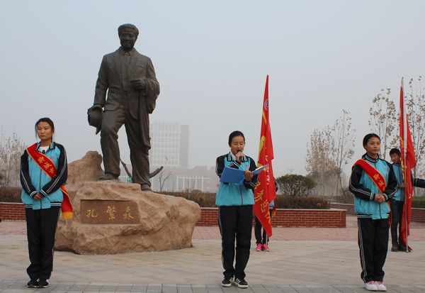 12月10日,来自我院各系的近600名学生志愿者齐聚孔繁森广场,面向孔繁森塑像,参加了孔繁森志愿服务分队授旗仪式。学院党委副书记兼纪检书记刘德云出席仪式并亲自为7个志愿服务分队授旗。