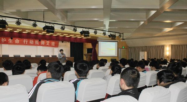 12月14日,在我院学术报告厅,学院总务处校医院联合学生工作处举办了题为“爱心呵护生命 行动抵御艾滋”的艾滋病知识讲座,由校医院大夫齐昕主讲,来自学院各系的共500多名学生代表聆听了讲座。