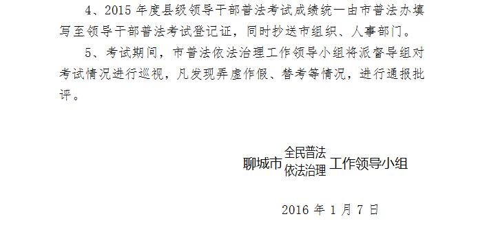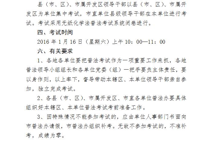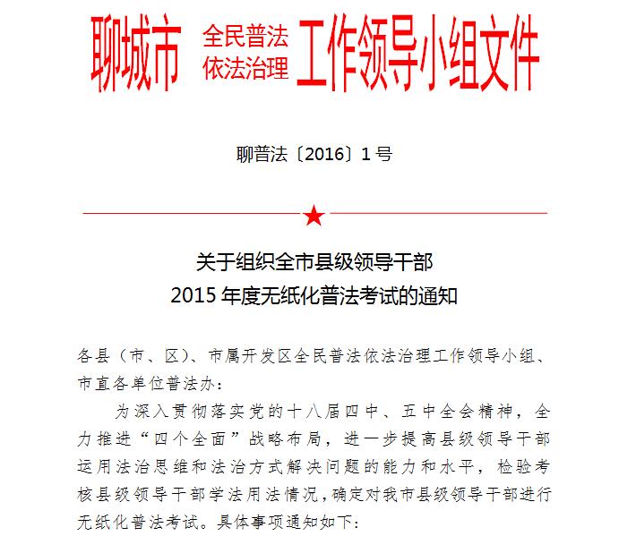 转发《关于组织全市县级领导干部2015年度无纸化普法考试的通知》