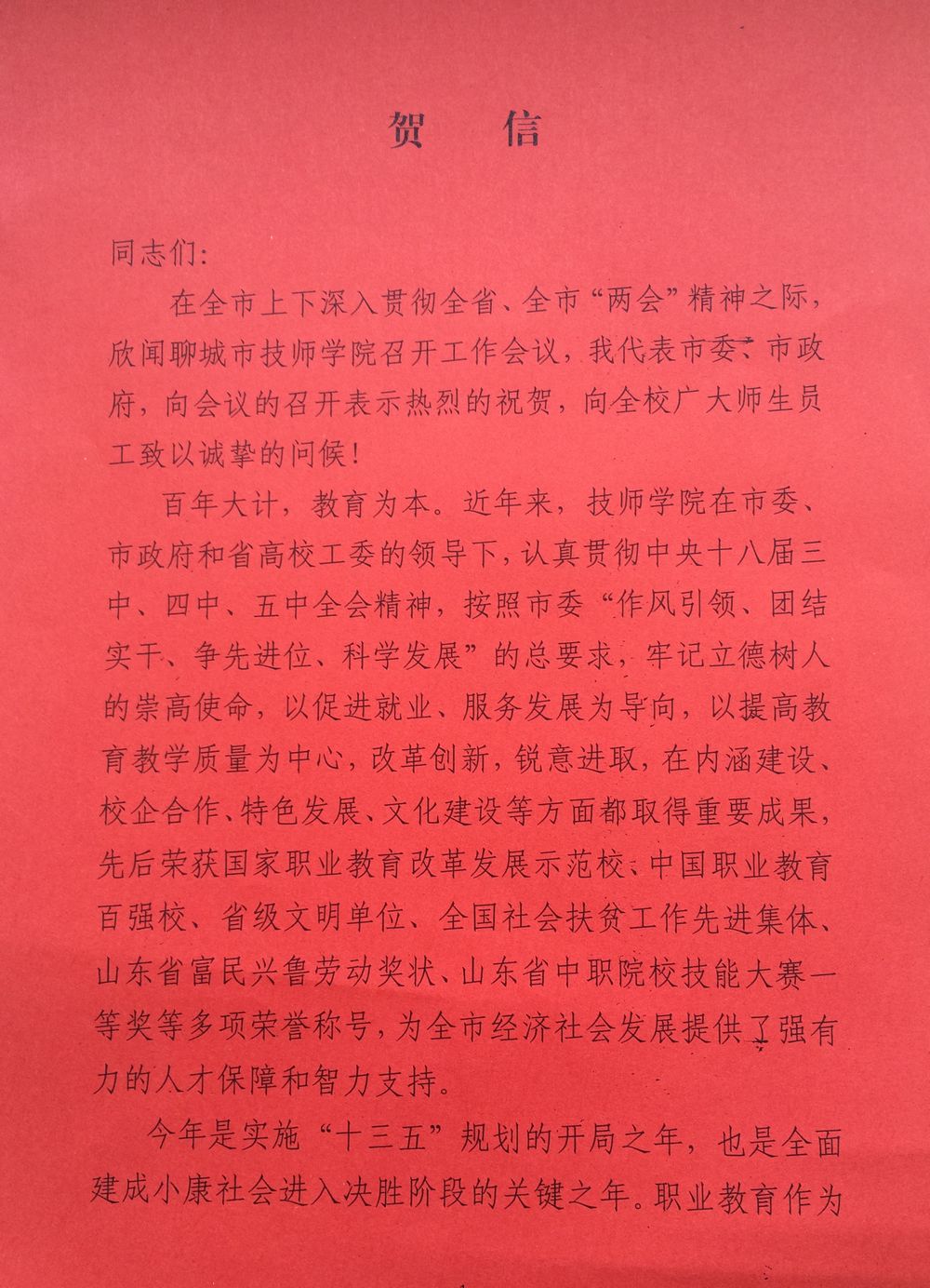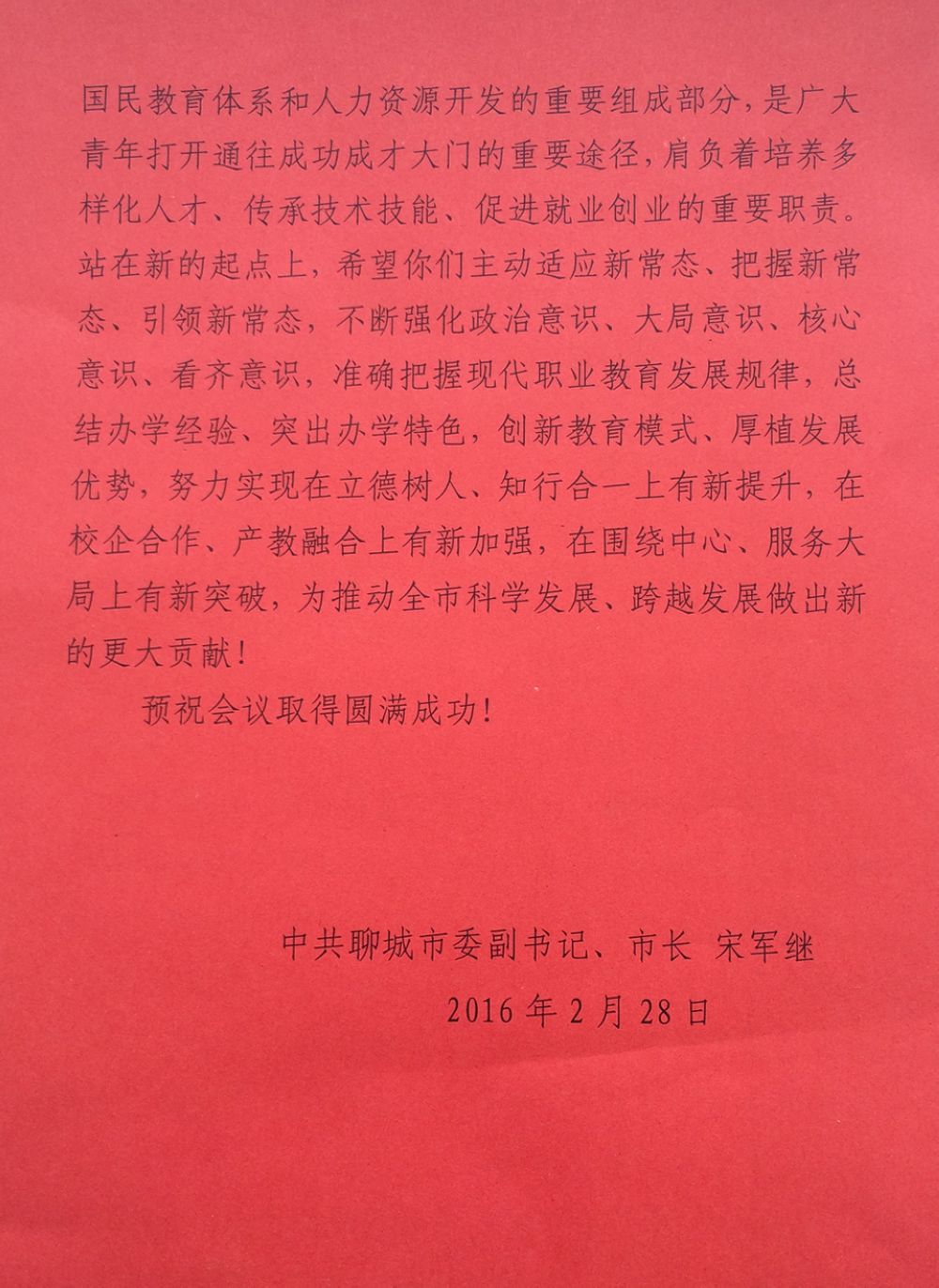 聊城市委副书记、市长宋军继致学院工作会议的贺信