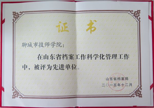 近日,山东省档案局下发《关于表彰2015年度全省档案工作科学化管理示范单位和先进单位的通报》,我院位列其中,被评为“山东省档案工作科学化管理先进单位”,是全市获此殊荣的4家单位之一。
