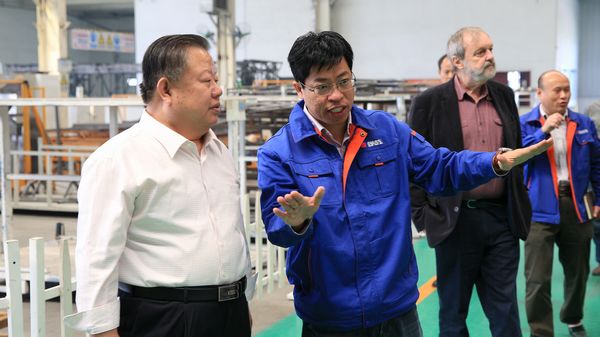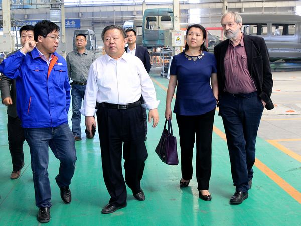 当天上午,李友渔、皮得米博斯、高红一行来到中通客车控股股份有限公司,在总经理孙庆民、副总经理王传甫等陪同下,参观了中通公司的冲压车间、焊接车间、科技楼等生产研发场所;下午到了学院信息楼六楼会议室进行了座谈。