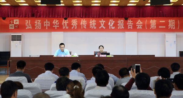 5月21日,我院在勤业楼学术报告厅隆重举行弘扬中华优秀传统文化报告会,邀请曲阜孔子礼仪文化学校的朱严华老师作了题为《传统文化与幸福人生》的主题讲座。学院党委书记李友渔,党委副书记兼纪委书记刘德云,副院长纪光泽、王化中,副院长兼工会主席崔杰等领导班子成员及全院教职员工500余人参加了报告会。崔杰主持活动。