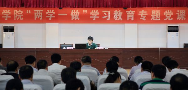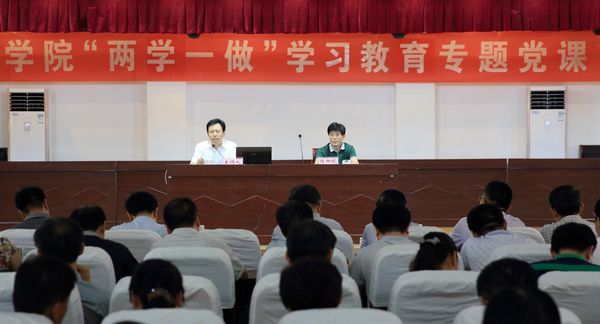 6月16日,我院进行“两学一做”学习教育,聊城市纪委派驻第七纪检组副书记侯仰琨讲了题为《唤醒党章党规党纪意识 落实全面从严治党要求》的专题党课。学院党委副书记兼纪委书记刘德云主持党课,院党委中心组成员和全体党员干部近300人参加了聆听学习。