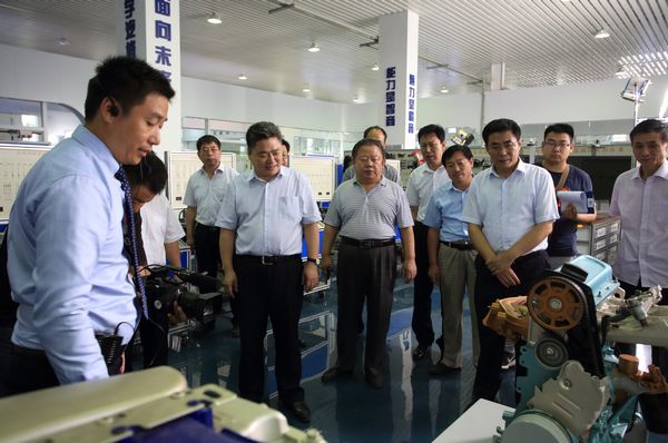 郭建民一行视察了学院繁森广场、雷锋广场、建筑培训考核基地、实训中心和学院所属的电子商务学院、北方汽车学院,并参观了学院鲁铭检测中心、孔子塑像及 “二十四孝”浮雕、中心机房等,同时,认真听取了李友渔对学院近几年发展情况、主要成绩、校企合作及特色校园文化建设等方面的情况介绍。