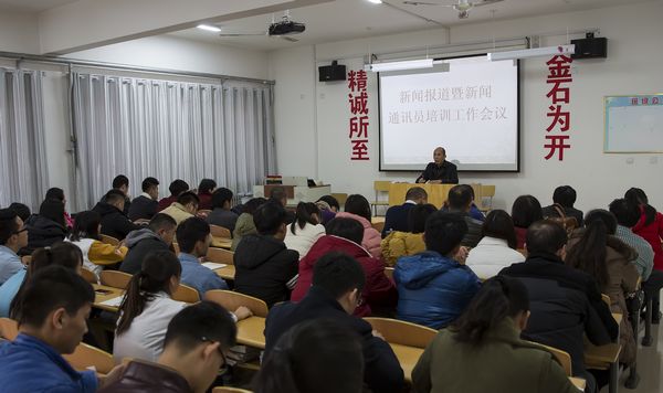 11月23日,学院新闻报道暨新闻通讯员培训工作会议在明志楼508室举行,校长助理、宣传处处长王宗敬出席会议并讲话,来自学院各单位的新闻通讯员及宣传处全体工作人员共70余人参加了活动。宣传处校报编辑部主任岳远涛主持会议,讲座由宣传处郑咏梅老师主讲。