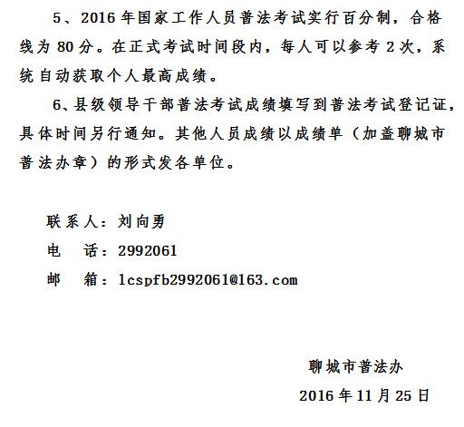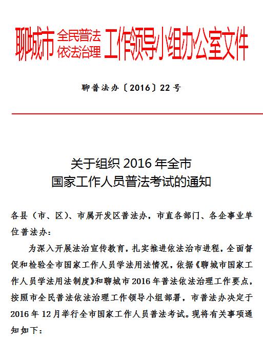 转发:关于组织2016年全市国家工作人员普法考试的通知