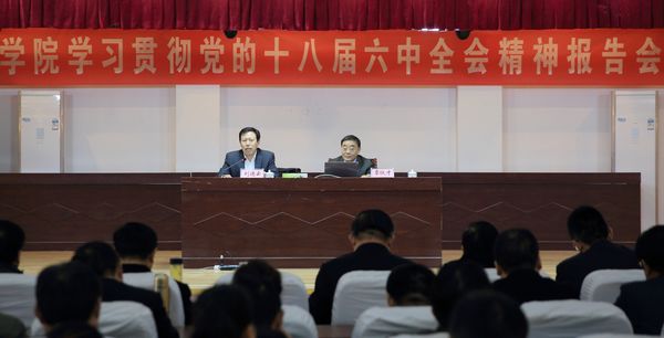 12月10日,在勤业楼学术报告厅,我院特邀中共山东省委党校特聘教授章猷才作学习贯彻党的十八届六中全会精神的专题报告,学院党委书记李友渔等领导班子成员及干部职工近600人聆听了报告会,会议由学院党委副书记刘德云主持。