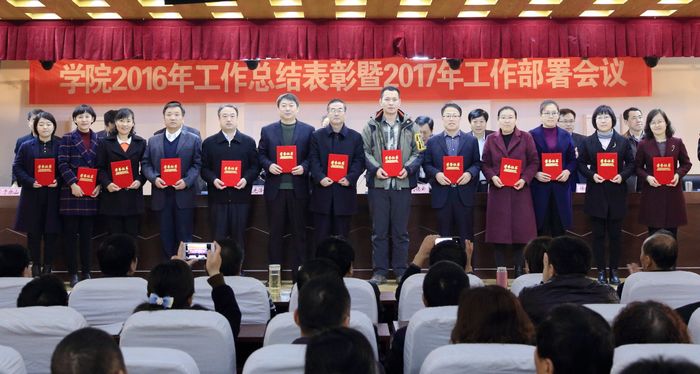 会上对2016年度先进单位、文明单位建设先进集体、先进党支部、特殊贡献单位、教学工作先进单位、学生管理工作先进单位和先进工作者、优秀共产党员进行了表彰并颁奖。