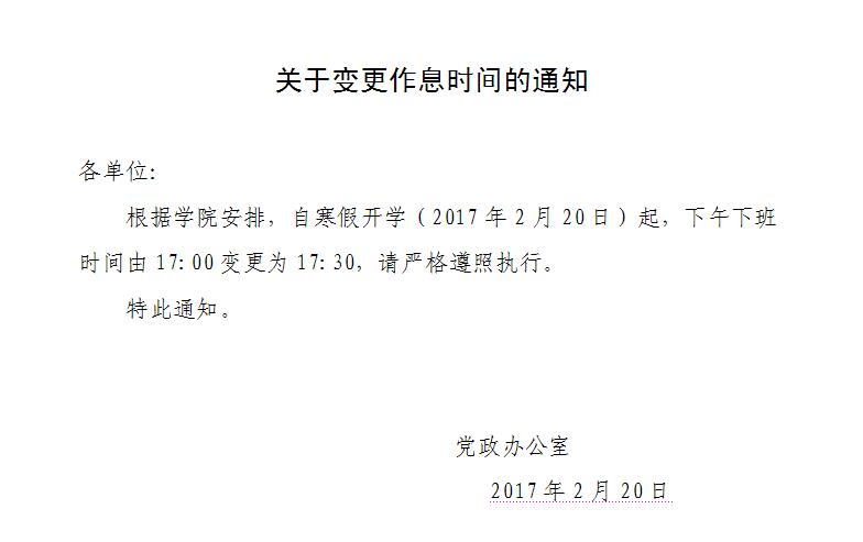学院关于变更作息时间的通知