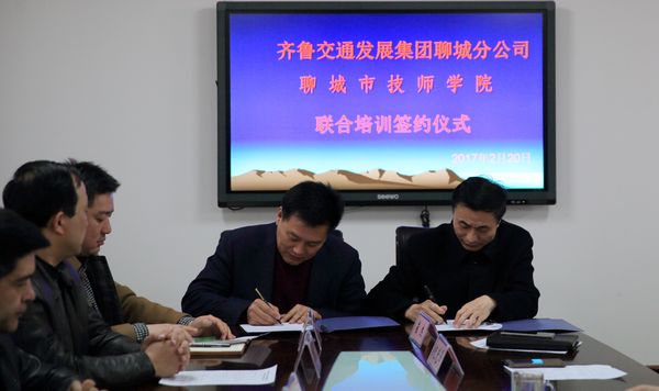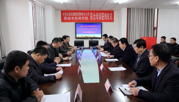 2月20日,学院与齐鲁交通发展集团聊城分公司举行联合培训签约仪式。学院党委书记李友渔致辞,齐鲁交通发展集团聊城分公司党委书记、总经理李文忠讲话。齐鲁交通发展集团聊城分公司党委委员、副总经理朱伟东、丁卫东等领导班子成员,学院副院长纪光泽、王化中、崔杰和纪委书记徐公义及有关部门负责人出席会议,学院党委副书记刘德云主持仪式。