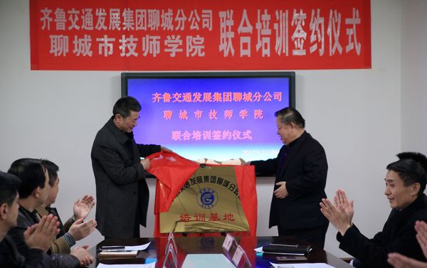 仪式上,李文忠、李友渔为“齐鲁交通发展集团聊城分公司培训基地”揭牌;丁卫东、纪光泽分别代表齐鲁交通发展集团聊城分公司、聊城市技师学院签订联合培训协议。仪式结束后,来宾参观了学院融入“红色文化、传统文化、工匠文化”的特色校园文化和北方汽车学院实训车间。