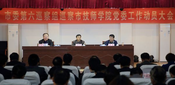 根据市委统一部署,3月23日下午,市委第六巡察组巡察聊城市技师学院党委工作动员会在学院勤业楼学术报告厅召开。市委巡察办主任尚殿双、市委第六巡察组组长岳目及市委第六巡察组全体成员、市纪委第七派驻纪检组副组长李玉泉出席会议。学院党委书记李友渔主持会议并作述廉述责报告及表态发言,学院领导班子成员、中层以上干部及下属科室负责人、人大代表、政协委员、教师代表及2014年3月以来退休的县级党员干部参加了会议。