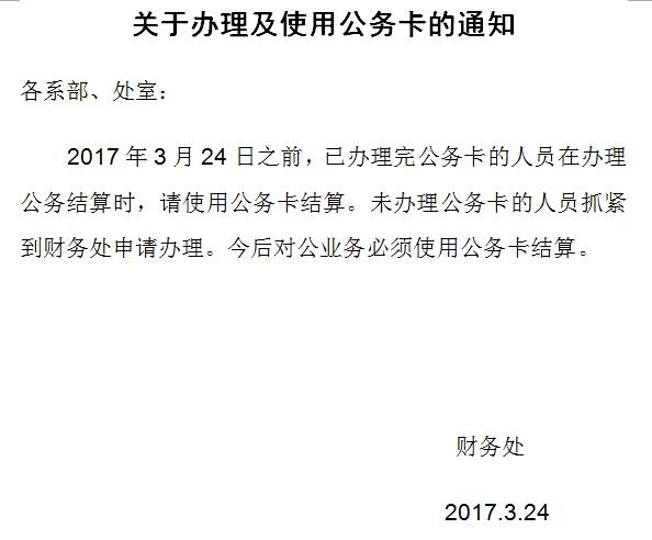 关于办理及使用公务卡的通知