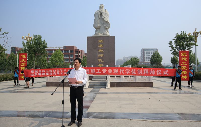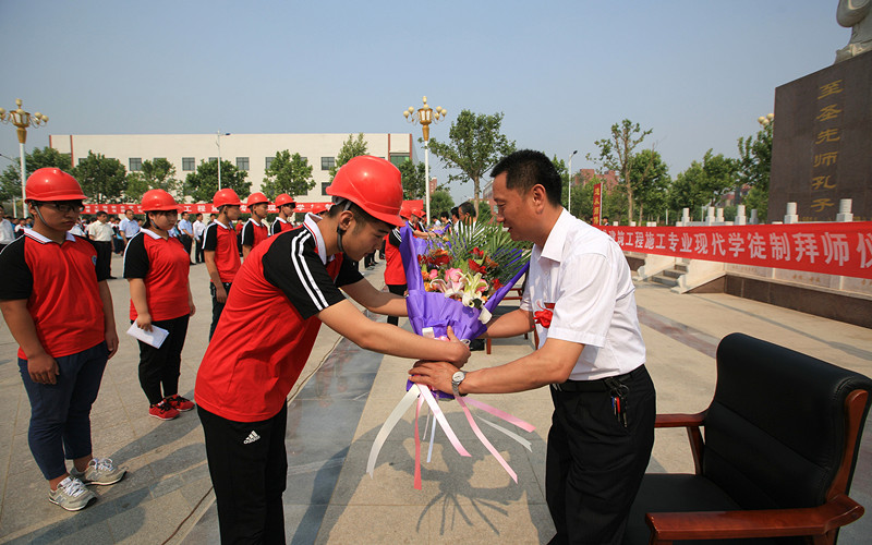 刘德云指出,开展现代学徒制人才培养,是深化产教融合、校企合作,推动职业教育改革创新的一种重要形式。学院成功申报为山东省第一批建筑施工专业现代学徒制试点,与山东金柱控股有限公司合作,共同探索校企协同育人机制、共同推进招生招工一体化、共同改革人才培养模式,共同培养高素质技能人才,实现学校、企业、学生三方共赢。这次联合举行拜师仪式,更是校企联合办学的又一丰硕成果。他希望同学们谦虚好学、遵从师傅教诲、传承师傅技艺、筑造工匠精神,更快地适应企业岗位需求,做一名讲传承、有创新的优秀人才。