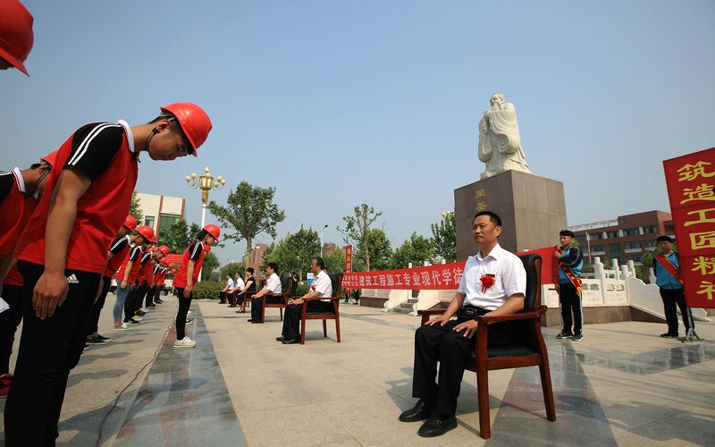 5月22日上午,学院现代学徒制拜师仪式在孔子广场举行。市政府办公室调研员杨连柱,山东金柱控股有限公司董事局主席兹留柱,市教育局副局长李正,学院党委书记李友渔、副书记刘德云和党政领导班子成员及相关单位负责人,建筑工程系、城市建设系师生和家长代表共计600余人参加了仪式。兹留柱、刘德云分别致辞,拜师仪式由学院副院长王化中主持。