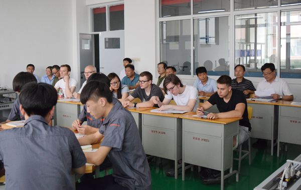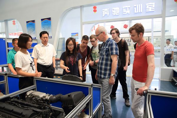 德方一行还参观了我院实训中心,进行听课和座谈交流。德方观摩了学院教师理论及实训课,并就中德双方课堂教学细节差异进行了交流座谈,德方教师对学院教师的授课和课程理实一体化的教学模式都给予了充分肯定,同时也以自己讲授的课程为例,向我们展示了德国的授课形式,探讨了德国“双元制”教学的特点,并借此交流了中、德双方不同的教学模式、教学方法、课程设计、学生成绩评价模式及学生企业实践情况等。通过友好座谈,双方对中德两国不同的教育方式有了更深的了解,为进一步加强合作奠定了基础。
