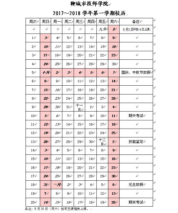 学院2017~2018学年第一学期校历