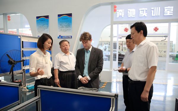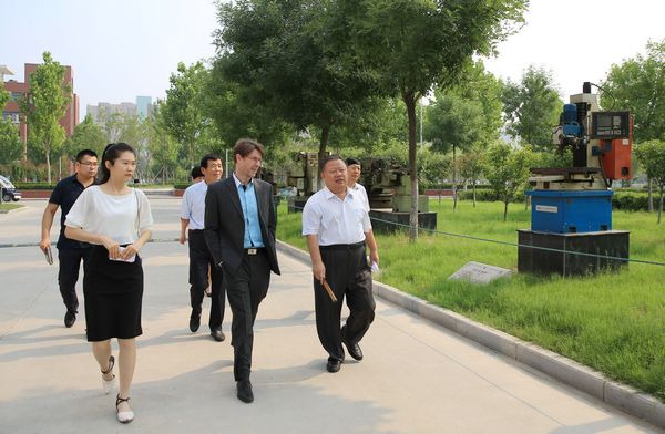 在杨连柱和学院领导陪同下,何佳明一行参观了学院建筑培训考核基地、实训中心、中国国际电子商务学院聊城分院、北方汽车学院、鲁铭检测中心、中心机房和特色校园文化展示区。