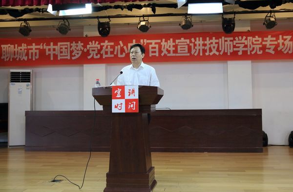 8月30日,聊城市“中国梦 党在心中”百姓宣讲团在市委讲师团团长葛海燕、副团长杨士武的率领下,来我院隆重举行“中国梦 党在心中”主题宣讲报告会。学院党委书记李友渔、副书记刘德云、副院长纪光泽、副院长兼工会主席崔杰等领导班子成员及全院教职员工共计600余人参加了报告会。