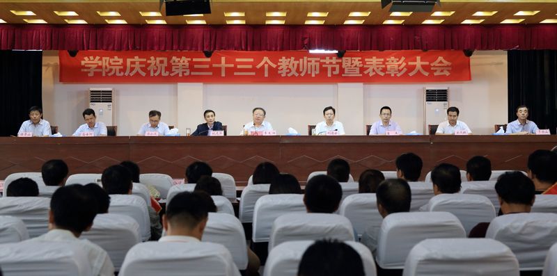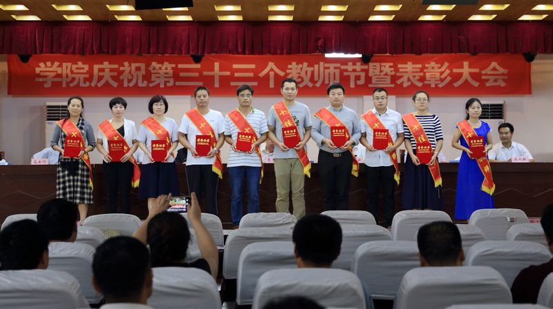 9月7日,勤业楼五楼学术报告厅,学院隆重庆祝第三十三个教师节,并对在教育教学工作中涌现的“十佳教师”和“ 十佳班主任”进行表彰。学院党委书记李友渔发表热情洋溢的讲话,党委副书记刘德云宣读学院表彰决定,副院长纪光泽主持大会。学院党政领导班子成员、全体专兼职教师、副科级以上干部及部分学生代表共计600余人参加会议。