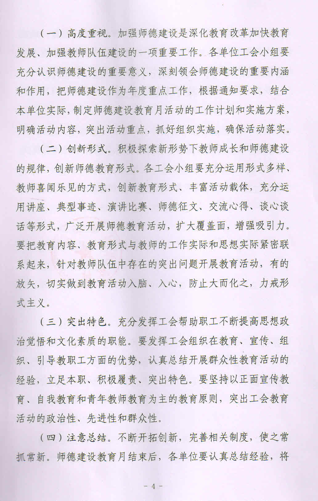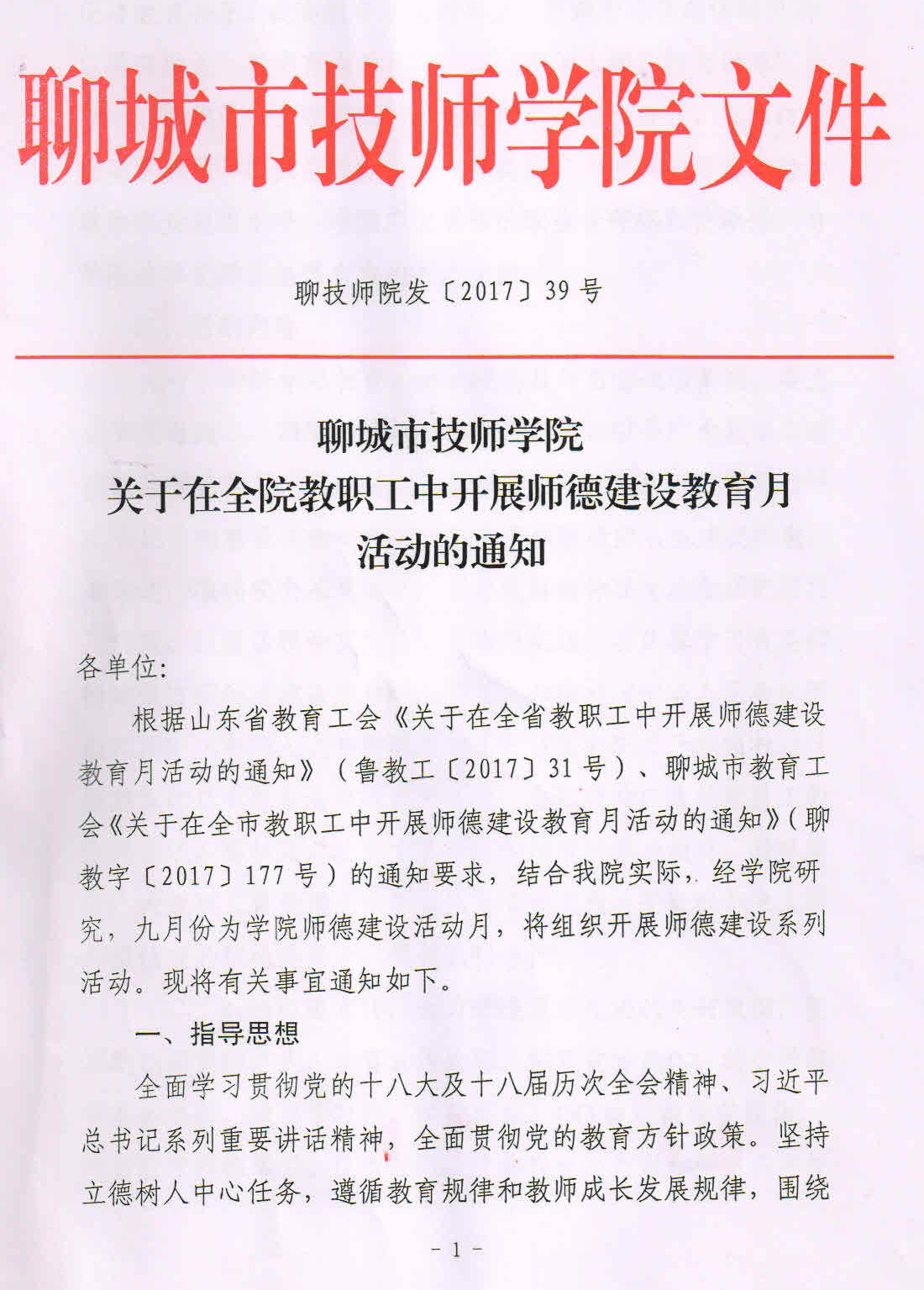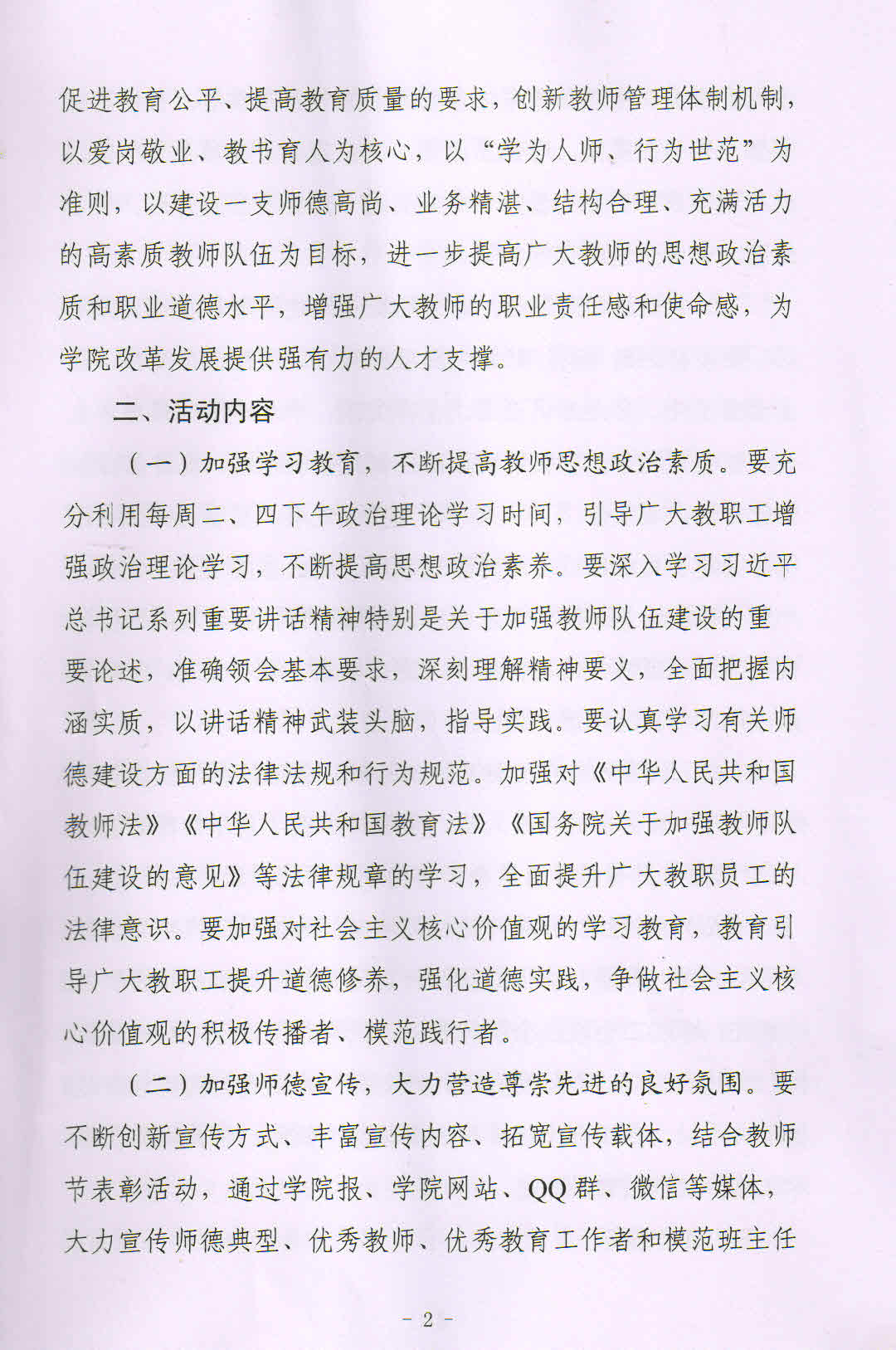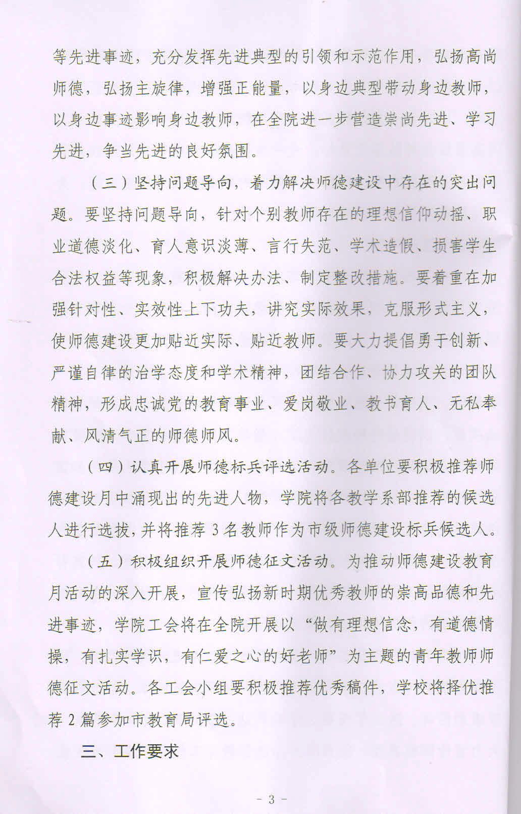 学院《关于在全院教职工中开展师德建设教育月活动的通知》