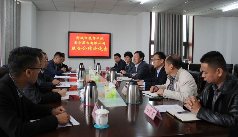 10月17日,在聊城市政府副秘书长、市扶贫办副主任付华东陪同下,歌尔股份有限公司副总裁高晓光一行三人来我院洽谈合作。学院党委副书记、院长刘德云,学院纪委书记徐公义及有关部门负责人出席洽谈会。