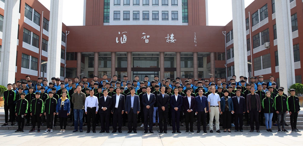 刘德云、王化中、姜建波、李文龙共同对“吉利订单班”进行了揭牌;校企双方领导与“吉利订单班”全体学员合影留念并参观了校园。