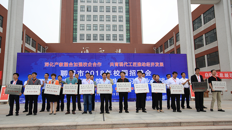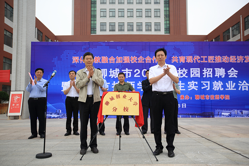 招聘会上,程继峰、刘德云共同为“聊城市创业大学分校”揭牌;聊城市技师学院为与学院开展深度校企合作的企业进行“聊城市技师学院(聊城高级工程职业学校)实习实训基地”授牌。