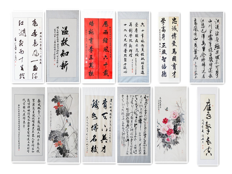 此次参展的50多幅作品,都紧扣主题,立意高远,每幅作品境界各异,或古典雅致,或行云流水,幅幅丹青妙笔,展现出风格独具、意境深远、优美精致的艺术造诣,令人赞叹不已。本次书画展得到了社会各界书画名家和校友的支持,中国书法家协会会员方建光,聊城市书法协会副主席王怀金、王漫之,聊城市直书画家协会副主席张文甫、郗小英,秘书长苏广振等都纷纷亲自书写作品以示祝贺,和我院教职工共同参与。