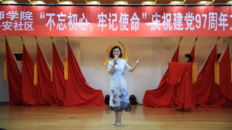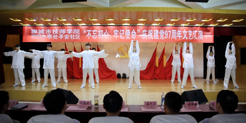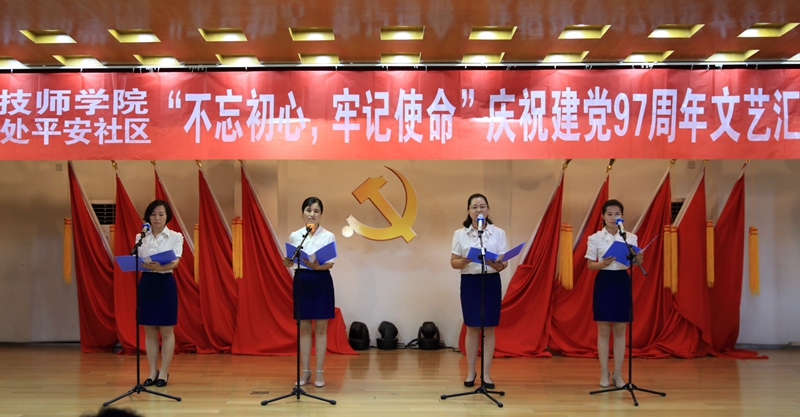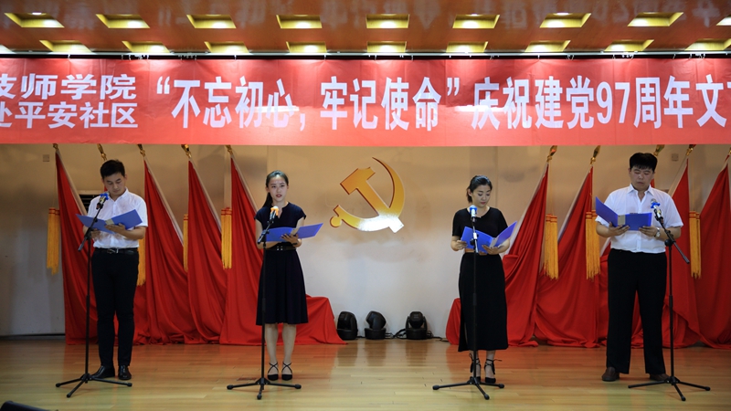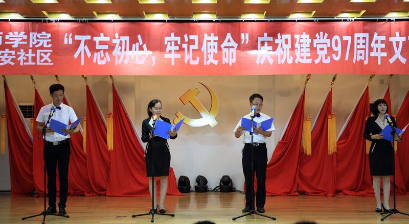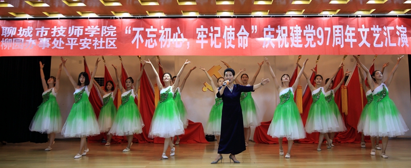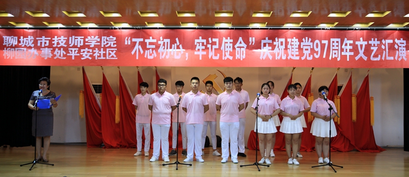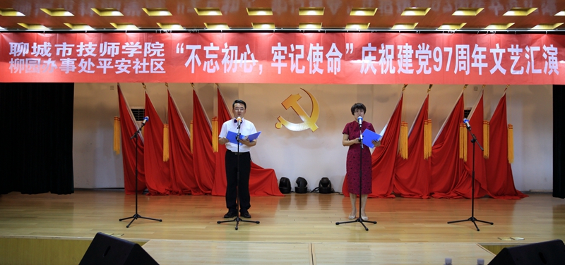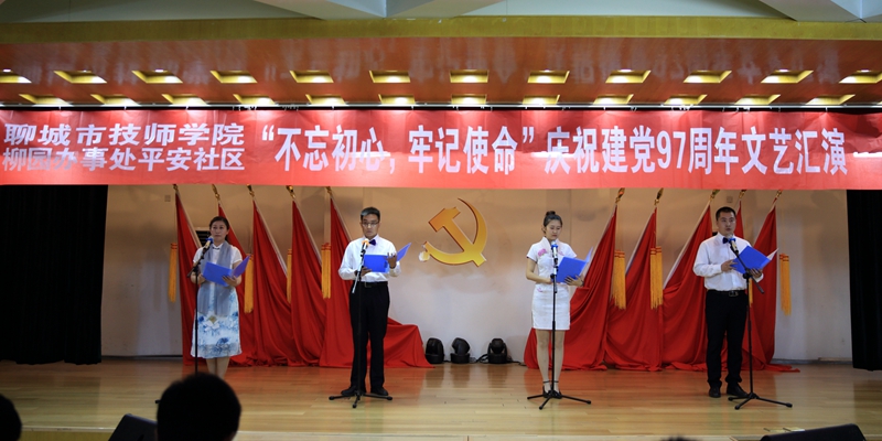 6月26日下午,学院学术报告厅,我院与聊城柳园办事处平安社区共同举办“不忘初心、牢记使命”庆祝建党97周年文艺汇演。学院党政班子成员、平安社区领导、平安社区20名党员代表、我院全体党员、优秀教师代表、政协委员、学生代表共500余人观看了演出。