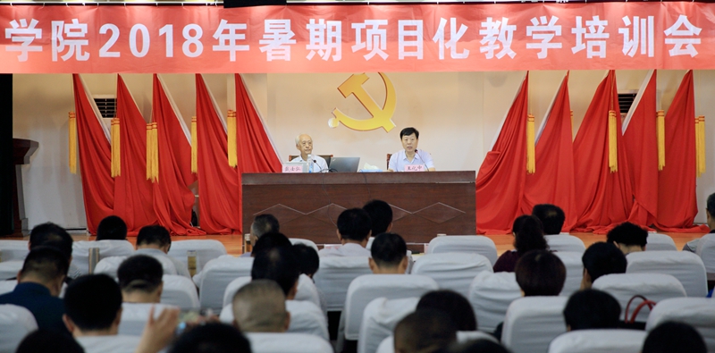 7月10日至12日,学院2018年暑期项目化教学培训会议召开。特邀全国著名职教专家戴士弘教授前来,对我院项目化课程改革工作进行指导培训。戴教授作了题为《应用型院校如何上好一次课——现代项目教学法单元教学实战》的培训讲座,学院党政领导班子成员、各级课题(项目)成员、教学系部中层以上干部、全体专兼职教师等共计400余人参加了聆听。学院党委委员、副院长王化中主持培训会。
