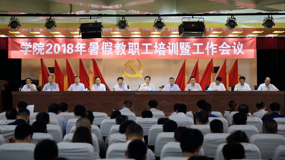 9月2日,在勤业楼五层学术报告厅,学院召开2018年暑期教职工培训暨工作会议。学院党委副书记、院长刘德云出席会议并作了题为《解放思想 对标一流 以大视野大格局引领学院高质量发展》的重要讲话。学院党政领导班子成员及全体教职工近600人参加了会议。党委委员、副院长纪光泽主持会议。