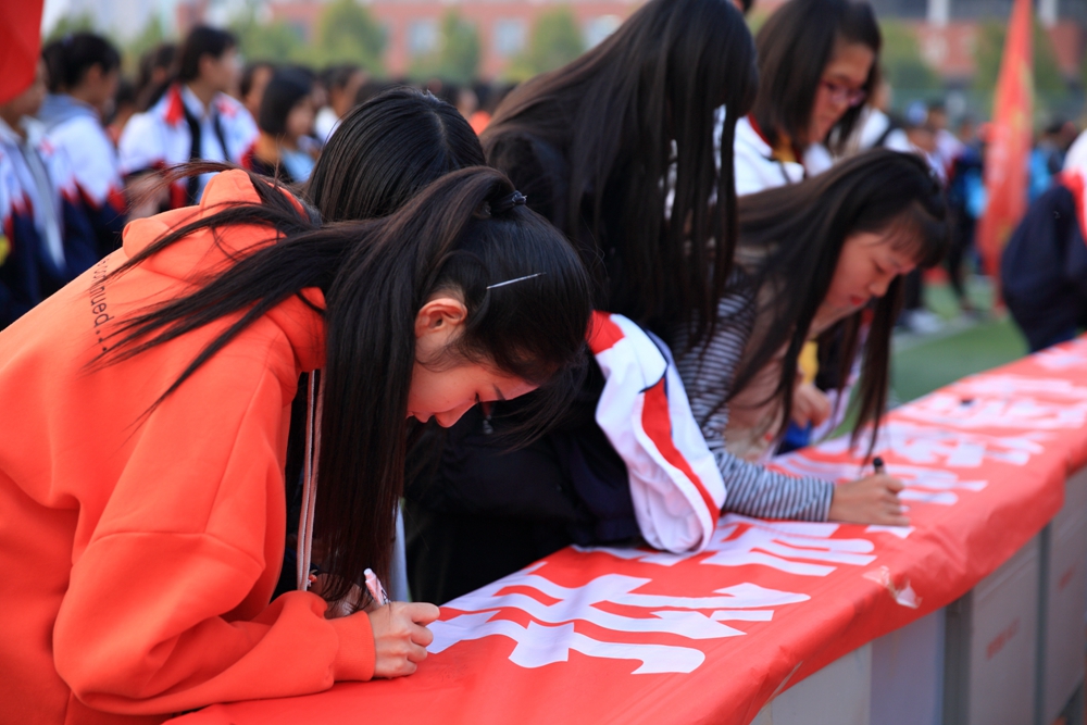 随后,团委书记、学生工作处处长程清斌宣读了致广大同学的一封信。学生干部于共胜领读了反邪教宣誓誓词。启动仪式结束后,各位领导参观了反邪教宣传图片展览。各教学系组织本系学生在反邪教宣传条幅上签名。