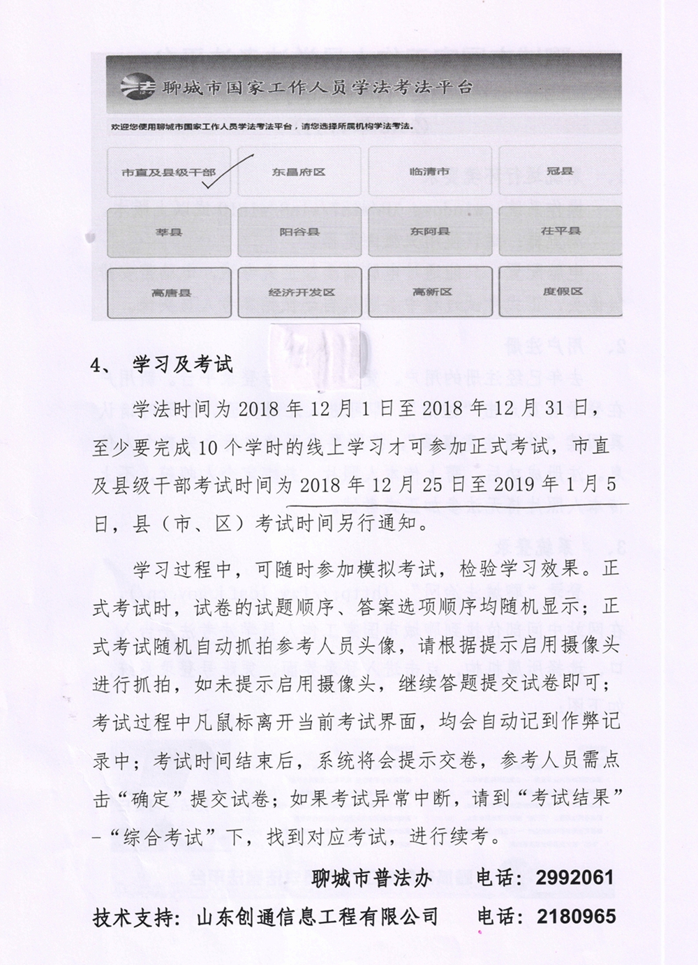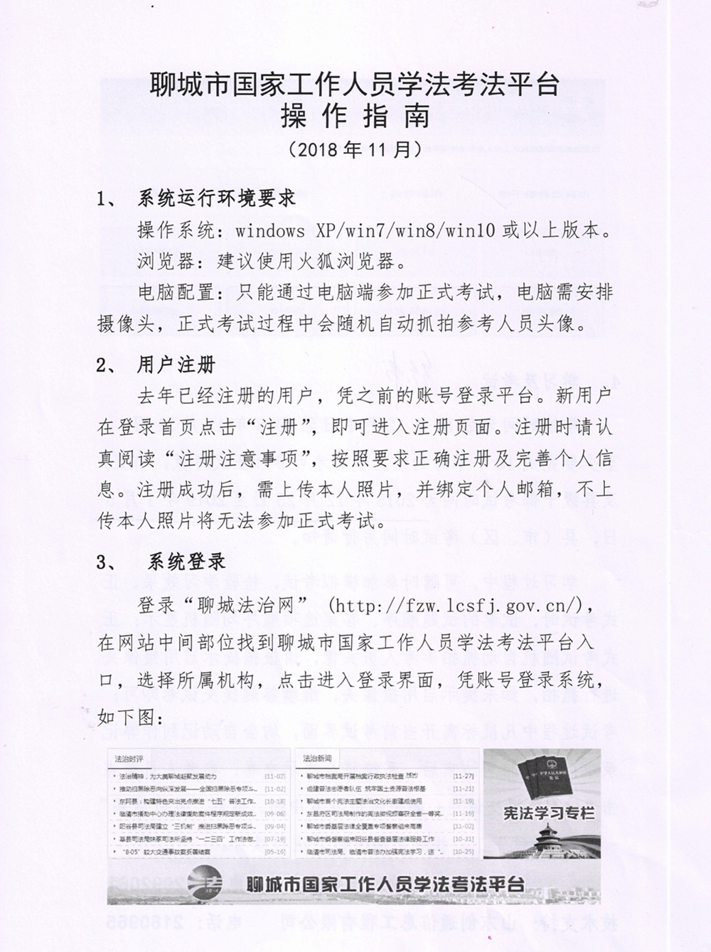 《聊城市国家工作人员学法考法平台操作指南》(2018年11月)