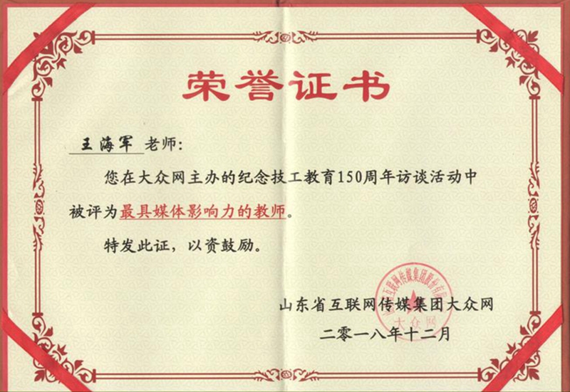 近日,由大众网举办的“匠心育人——山东技校名师主题访谈”活动走进我院,对我院实训教学部王海军、金胜举两位技术名师进行了专访,并将两位名师评为“最具媒体影响力的教师”。