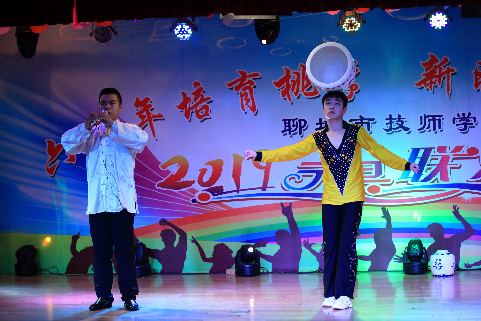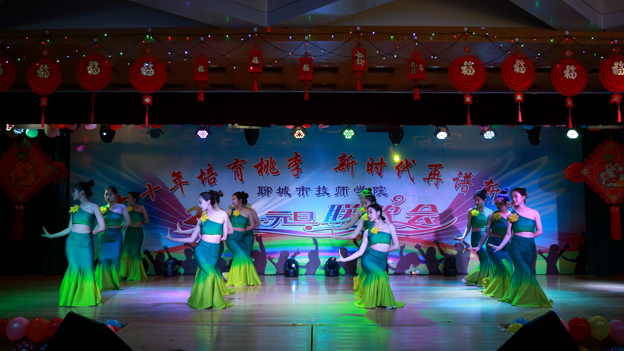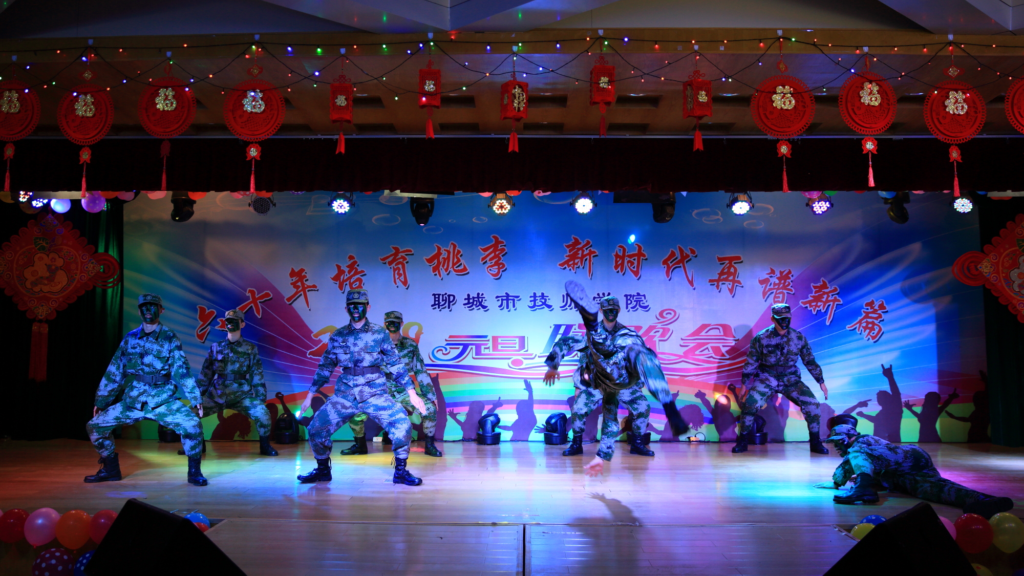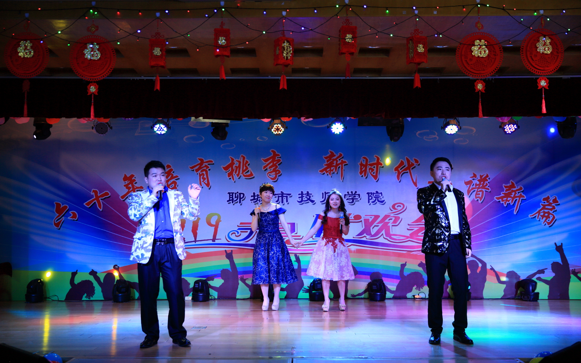 随后,精彩节目次第纷呈。恢弘大气的歌曲男低音《我是中国人》,唱出了每个中华儿女的豪情,女生二人组《最美的期待》刻画出青春的身影,经典串烧《难忘的旋律》引发了回忆与感动;葫芦丝和杂技巧妙糅合一静一动,传统豫剧选段与彩绸舞声色俱佳,军魂社团和武术爱好者的表演动人心魄,诗朗诵《致敬,学院六十华诞》引起师生的强烈共鸣;舞蹈、相声、吉他乐弹奏······无不展示着师生的才情,一次次把联欢会气氛推向高潮,赢得阵阵掌声。