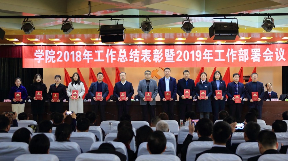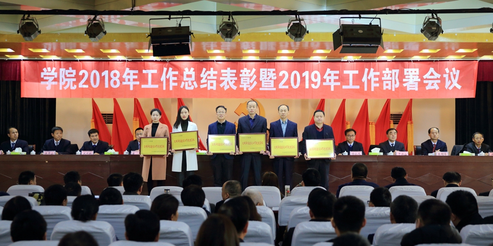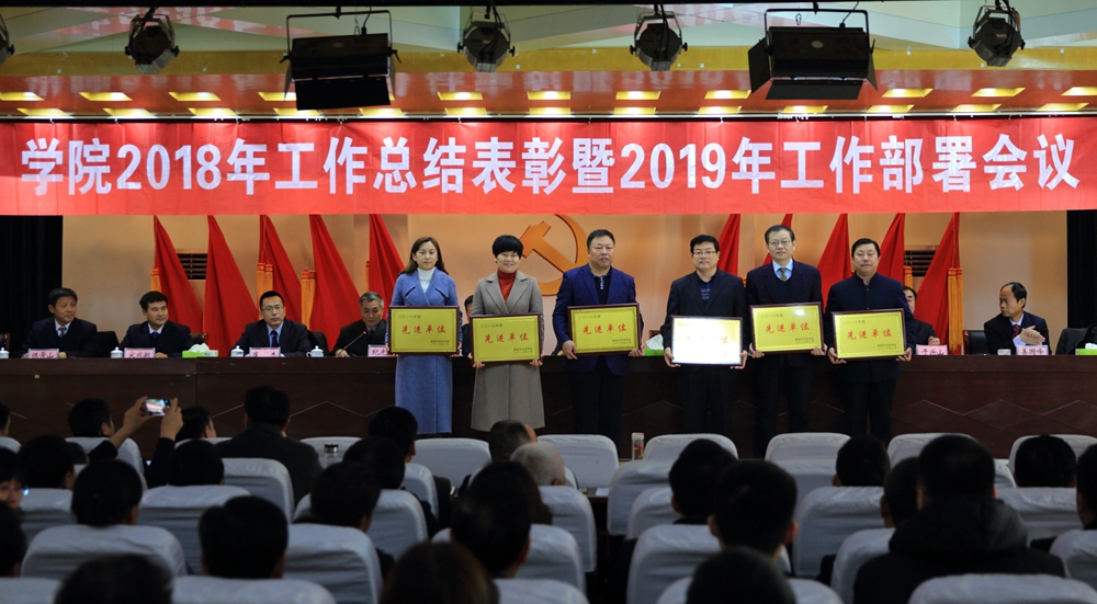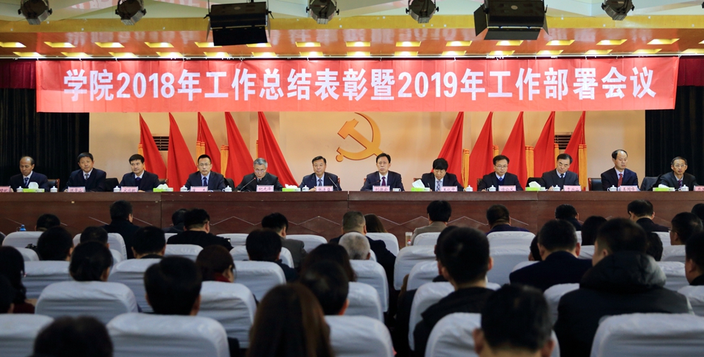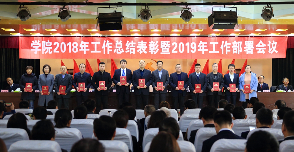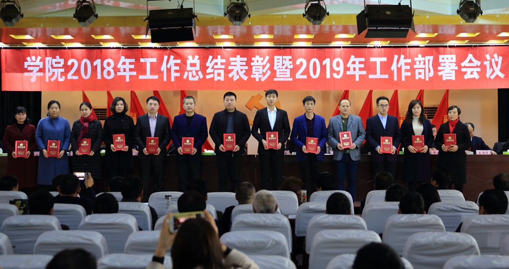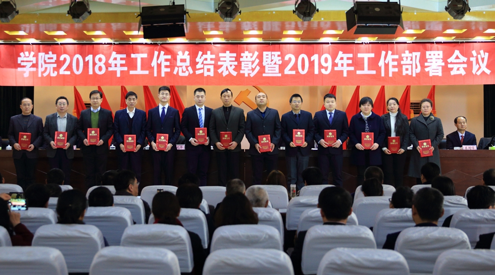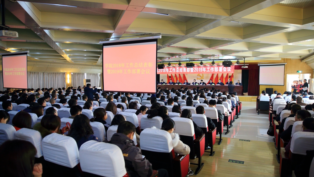 2月23日,在勤业楼五楼学术报告厅,学院召开了2018年工作总结表彰暨2019年工作部署会议。学院党委书记张连臣作了题为《担当作为 狠抓落实 创新创业再出发 凝心聚力续新篇》的主旨讲话。学院党委副书记、院长刘德云总结了学院 2018年工作,对学院2019年工作作了安排部署。学院党委委员、副院长纪光泽主持会议并宣读了表彰决定。学院党政领导班子成员及全体教职工近600人参加了会议。