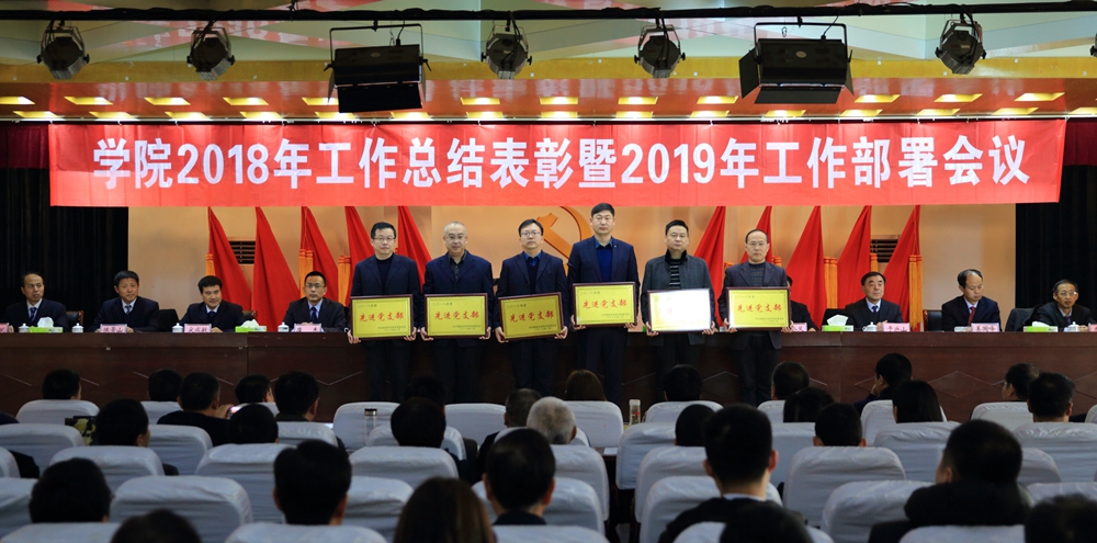 会上,纪光泽宣读了学院表彰决定,对2018年度“先进单位”、“文明单位建设先进集体”、“先进党支部”和部分先进工作者代表、优秀共产党员代表进行了表彰并现场颁奖。