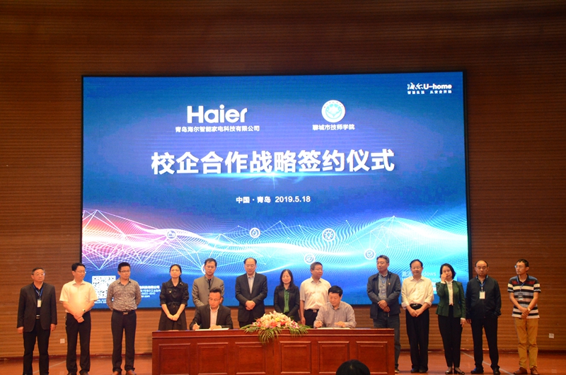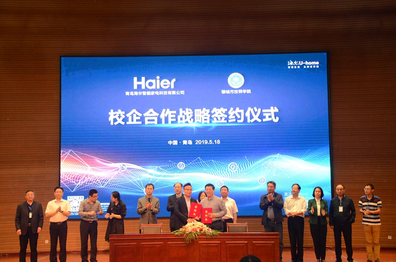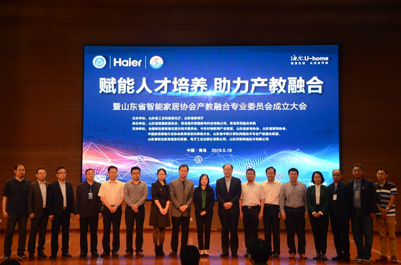 5月17日至18日,山东省智能家居协会产教融合专业委员会成立大会在青岛举行。来自全省中高职院校的百余名代表参加了会议。会上,我院被选举为专业委员会副理事长单位,学院党委委员、副院长王化中被选举为专业委员会副主任,并代表我院与青岛海尔智能家电科技有限公司签订了校企合作战略协议。