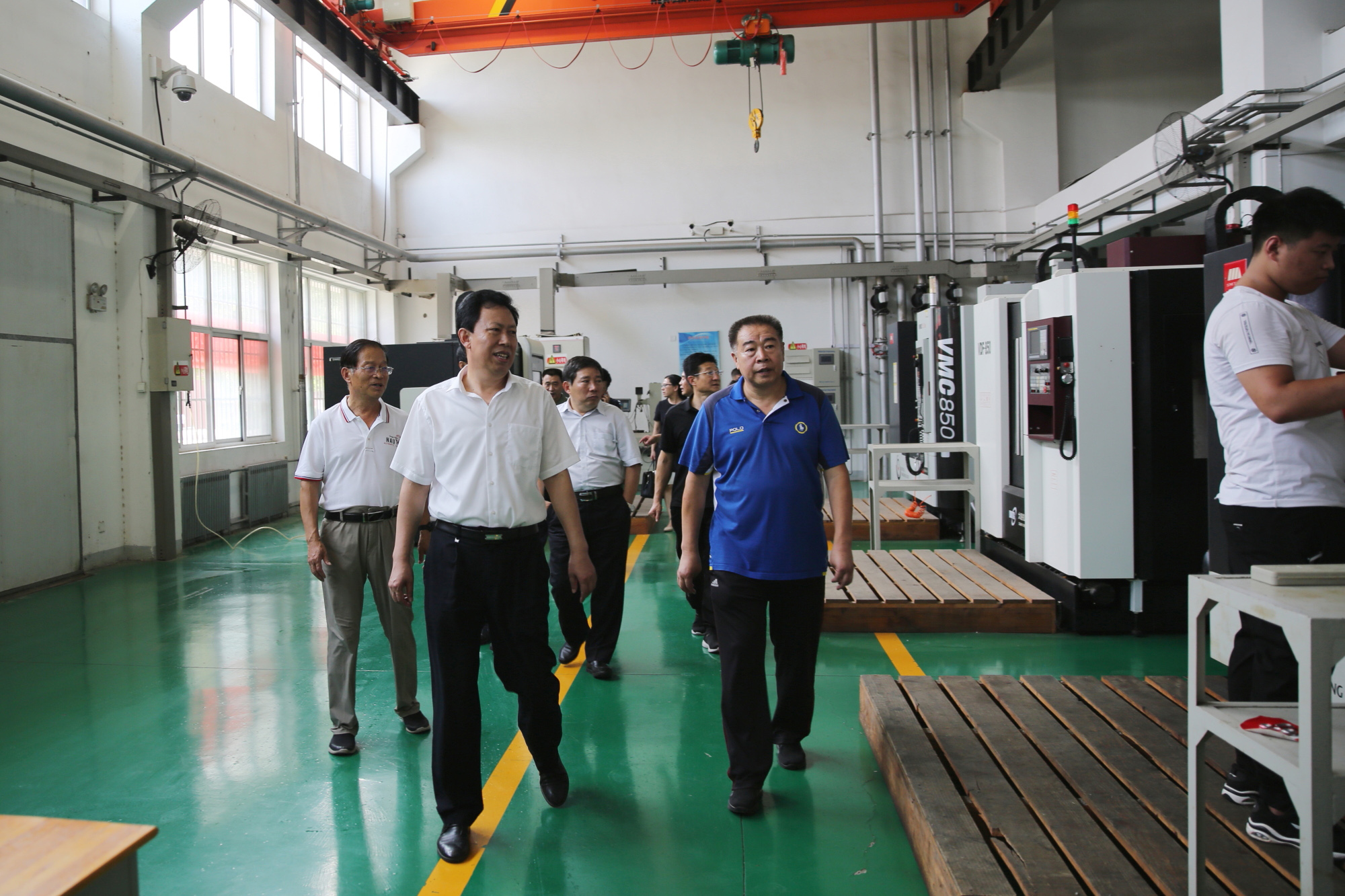 邢其年一行先后参观我院孔繁森广场、雷锋广场等红色文化、工匠文化和传统文化等展示区,实地察看建筑培训基地、实训中心数控车床、液压与气动系统装调与维护、电子商务等一体化实训室,以及鲁铭检测、北方汽车学院实训车间等。