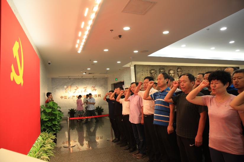 在纪念馆宣誓厅,全体党员们面向党旗,举起右手进行庄严宣誓,重温入党誓词。在纪念馆,全体党员在讲解员的带领下瞻仰了中共一大代表群像浮雕,参观《伟大开篇—中国共产党创建历史陈列》,“前赴后继、救亡图存”“风云际会、相约建党”“群英汇聚、开天辟地”等专题展区,观看了浓缩我们党波澜壮阔的奋斗历程视频短片。