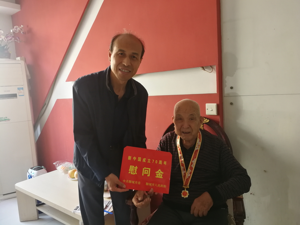 9月26日上午,学院党委委员、组织人事处处长高绪斌代表学院党委到我院离休老干部家中走访慰问。送去了由中共中央、国务院、中央军委联合颁发的“庆祝中华人民共和国成立七十周年”纪念章及聊城市委发放的慰问金。传达了党中央、国务院和中央军委及聊城市委对离休老干部的关怀,并代表学院党委向他们致以崇高的敬意和诚挚的问候。