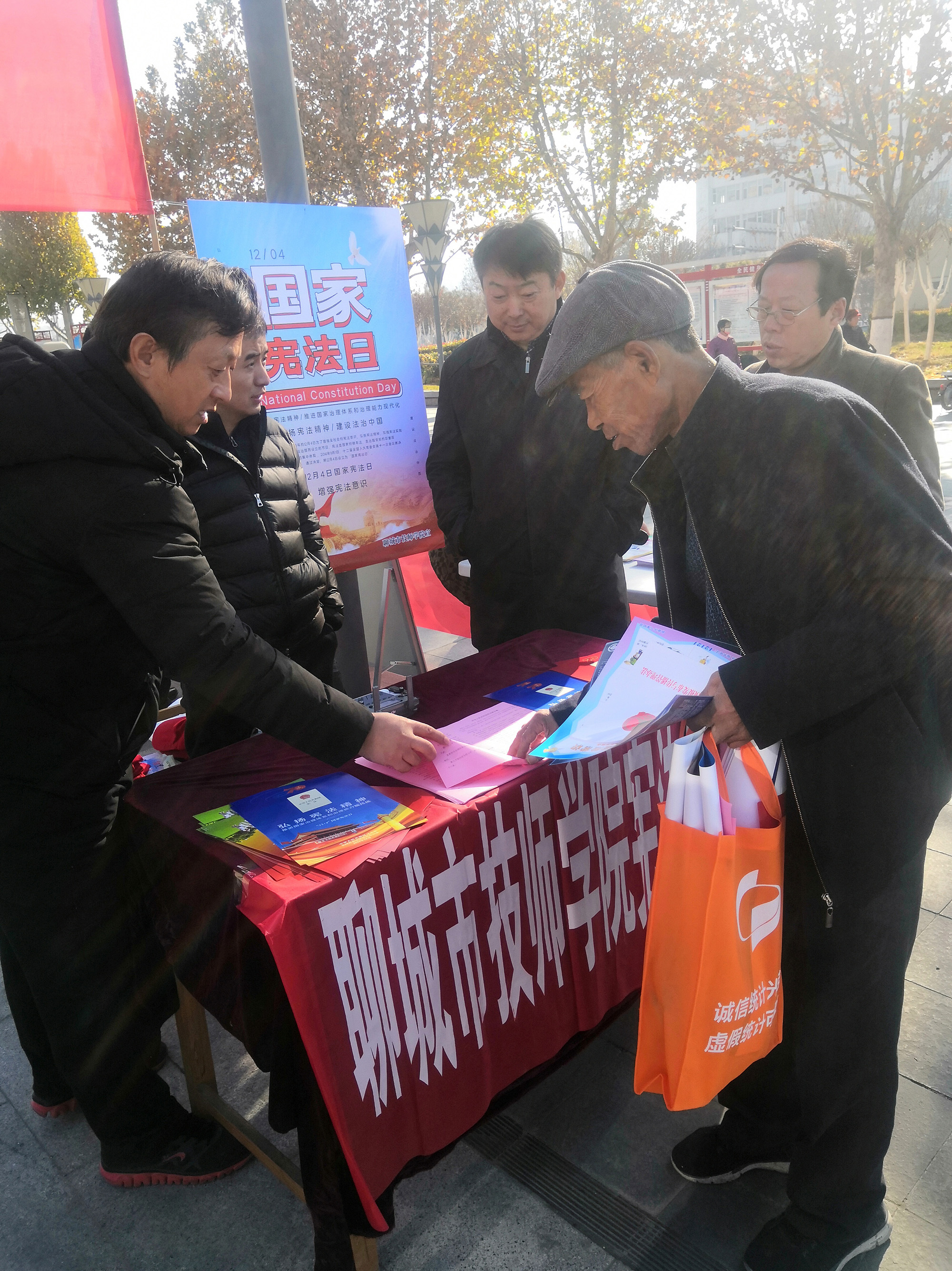 12月4日是我国第6个国家宪法日。我院宣传处和保卫处工作人员到聊城市民文化活动中心广场参加宪法宣传活动。
