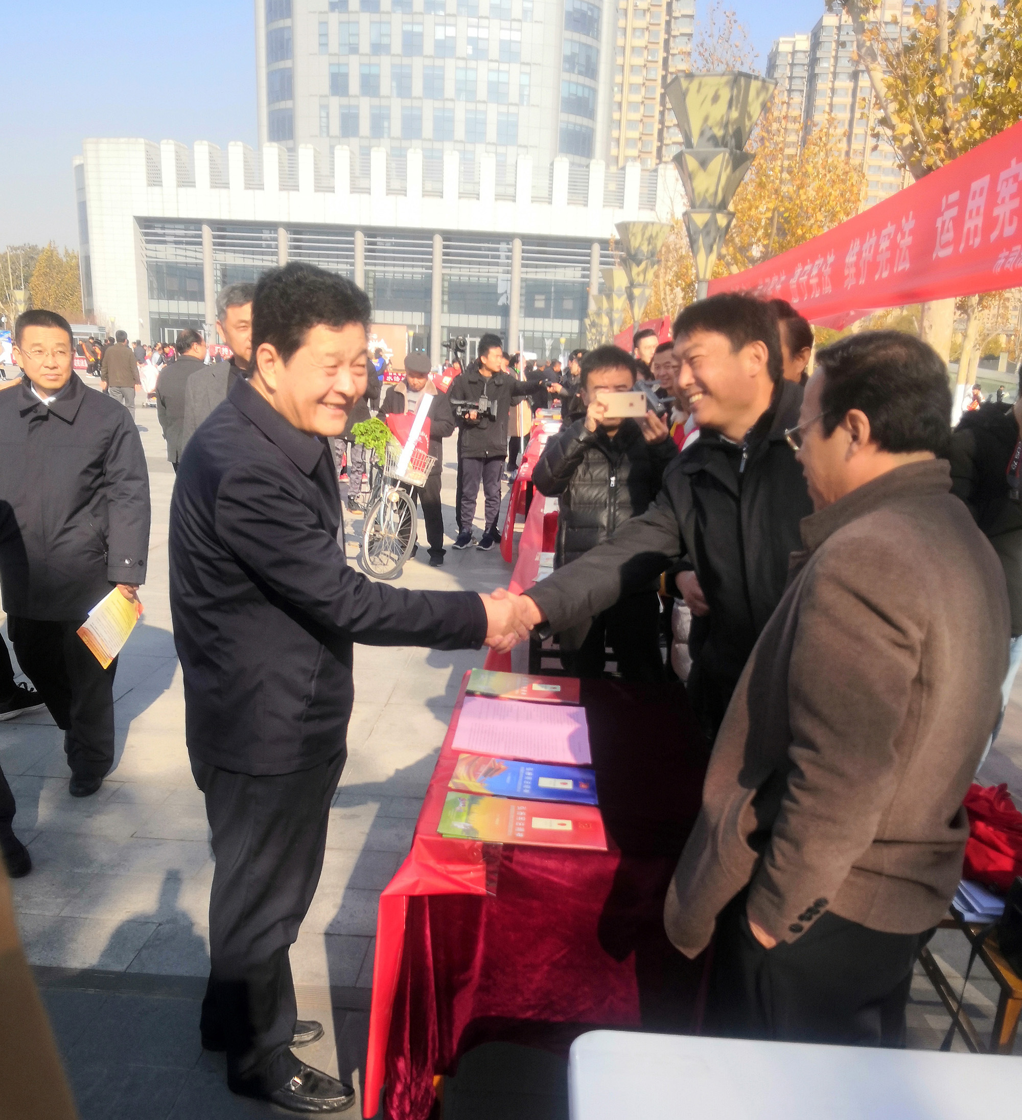 当天,我院工作人员一大早就来到现场布置好咨询台。为开展好此次宣传活动,宣传处精心组织、超前谋划、积极参与,印制了宣传手册、条幅、制作了宣传展板。参加活动的工作人员通过政策宣传、现场答疑、宪法知识讲解等多种形式,为过往群众提供咨询服务,解答有关问题。