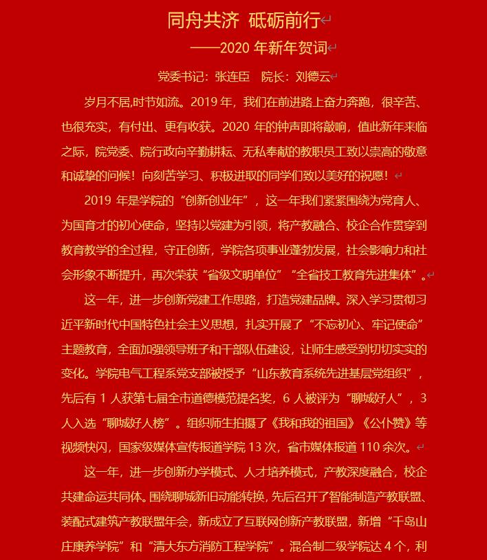 同舟共济 砥砺前行——2020年新年贺词