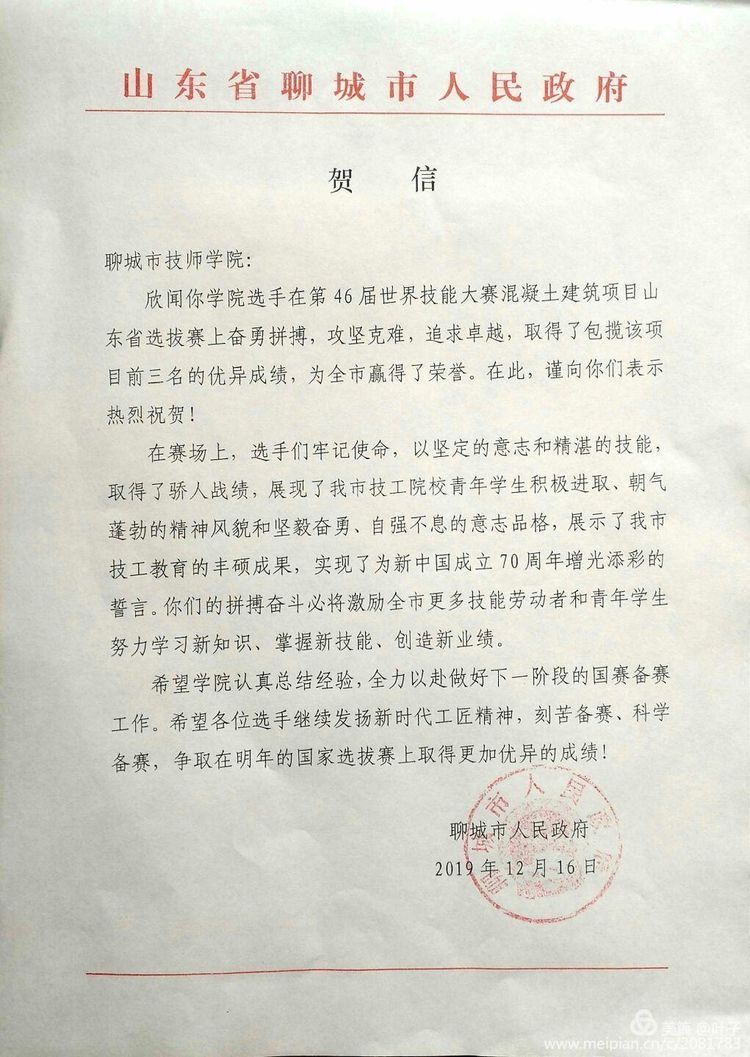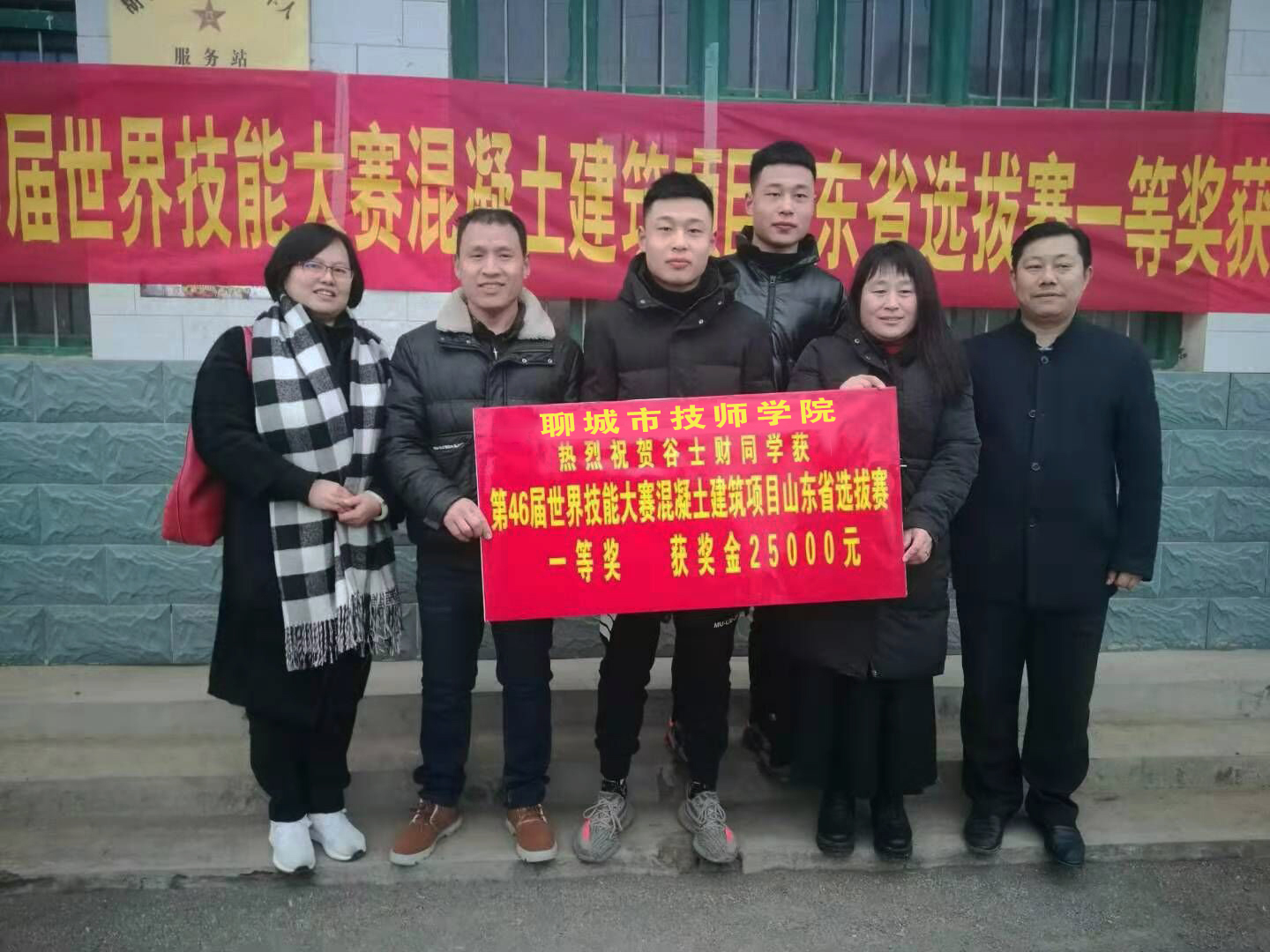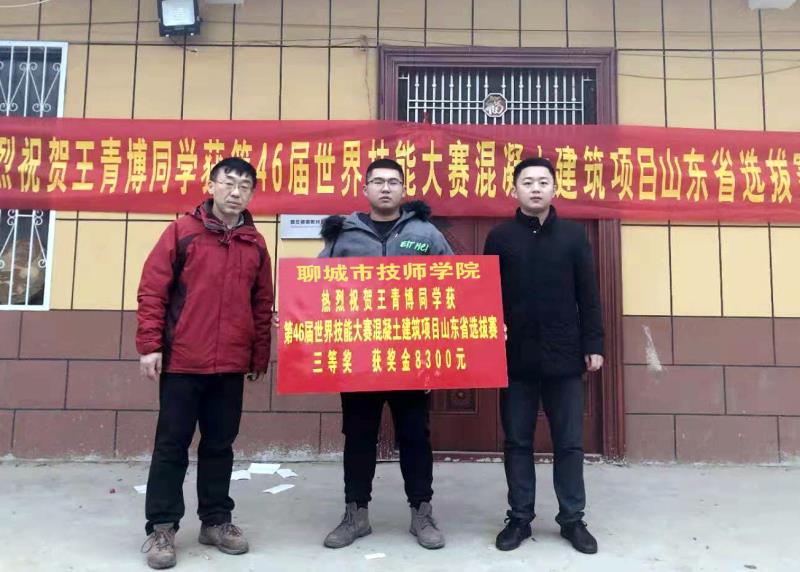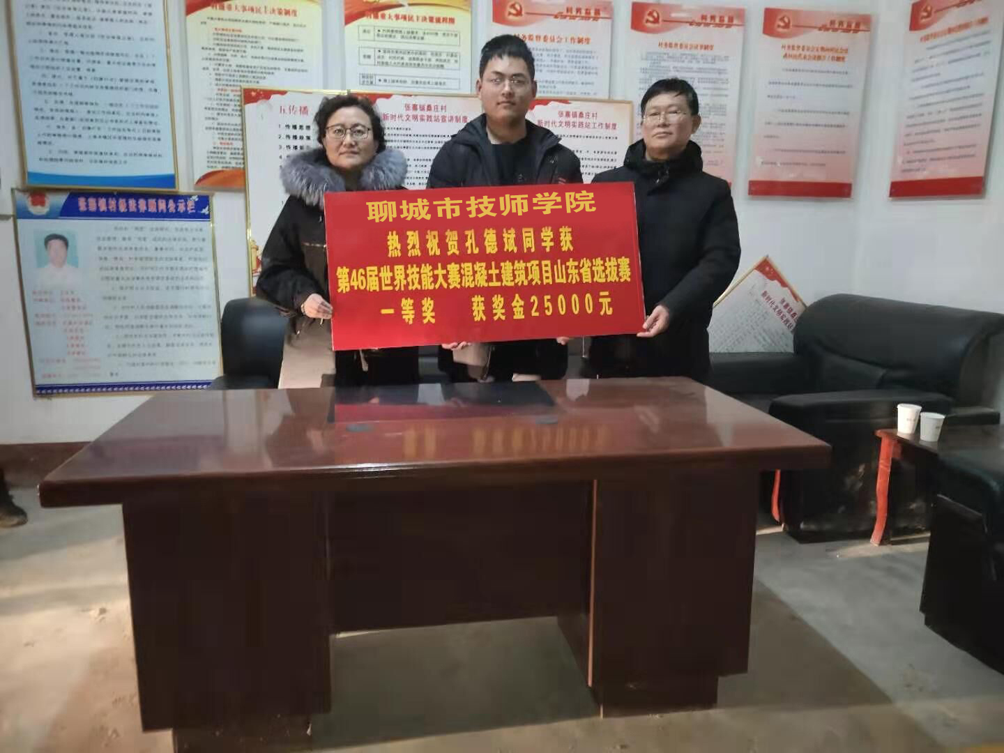 2020年1月23日(农历2019年腊月二十九),鼠年春节来临之际,聊城市技师学院把聊城市人民政府奖励的在第46届世界技能大赛山东省选拔赛混凝土建筑和砌筑项目中包揽前三名的132800元奖金和聊城市人民政府贺信送到获奖选手家中,并送去鼠年新春的祝福。